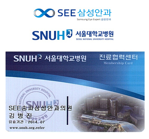 SEE삼성안과는 "서울대학교병원'과 진료협력관계입니다.
