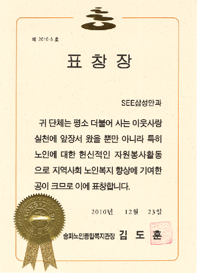 2010.12.23(목) 13:00 송파노인종합복지관 송년행사에서 SEE삼성안과가